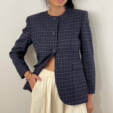 80s Christian Dior blazer vintage wool navy blue houndstooth Very well made.